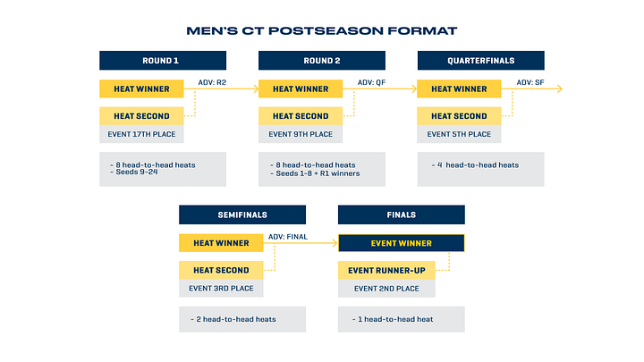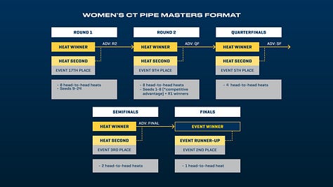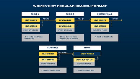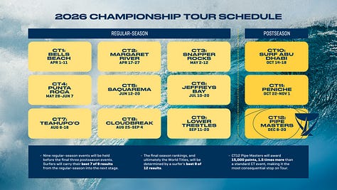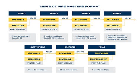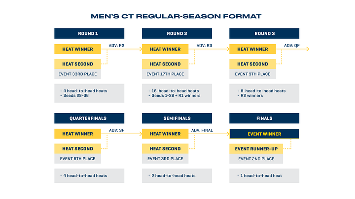 explicadas aqui https://www.worldsurfleague.com/posts/546281/2026-championship-tour-schedule-and-formats
